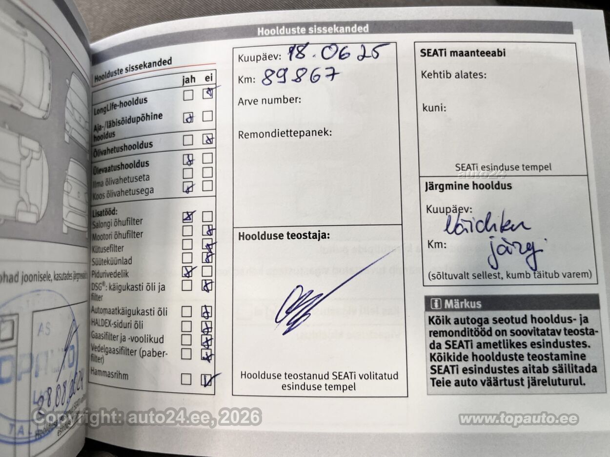 - Viimane hooldus 06.2025 läbisõidul 89 867 kilomeetrit